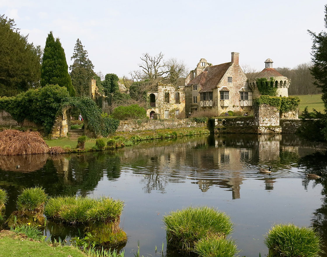 Scotney Castle is a rather special place to visit; the visitor first encounters a beautiful Victorian mansion, known as ‘New’ Scotney Castle. It was built between 1835 and 1843 by Edward Hussey III, and is a place worthy of a visit for itself alone. However, beyond the mansion lies 780 acres of beautiful gardens and parkland, with ‘Old’ Scotney Castle as its central feature. The old castle was built around 1378 by Roger de Ashburnham and was lived in for 450 years by successive families, the Ashburnhams, the Darells and the Husseys. It was developed over time by each of its inhabitants and by the 1700’s it was a substantial family home. When the new house was built in 1835, Hussey decided to ruin the old castle to create a romantic folly for the garden.